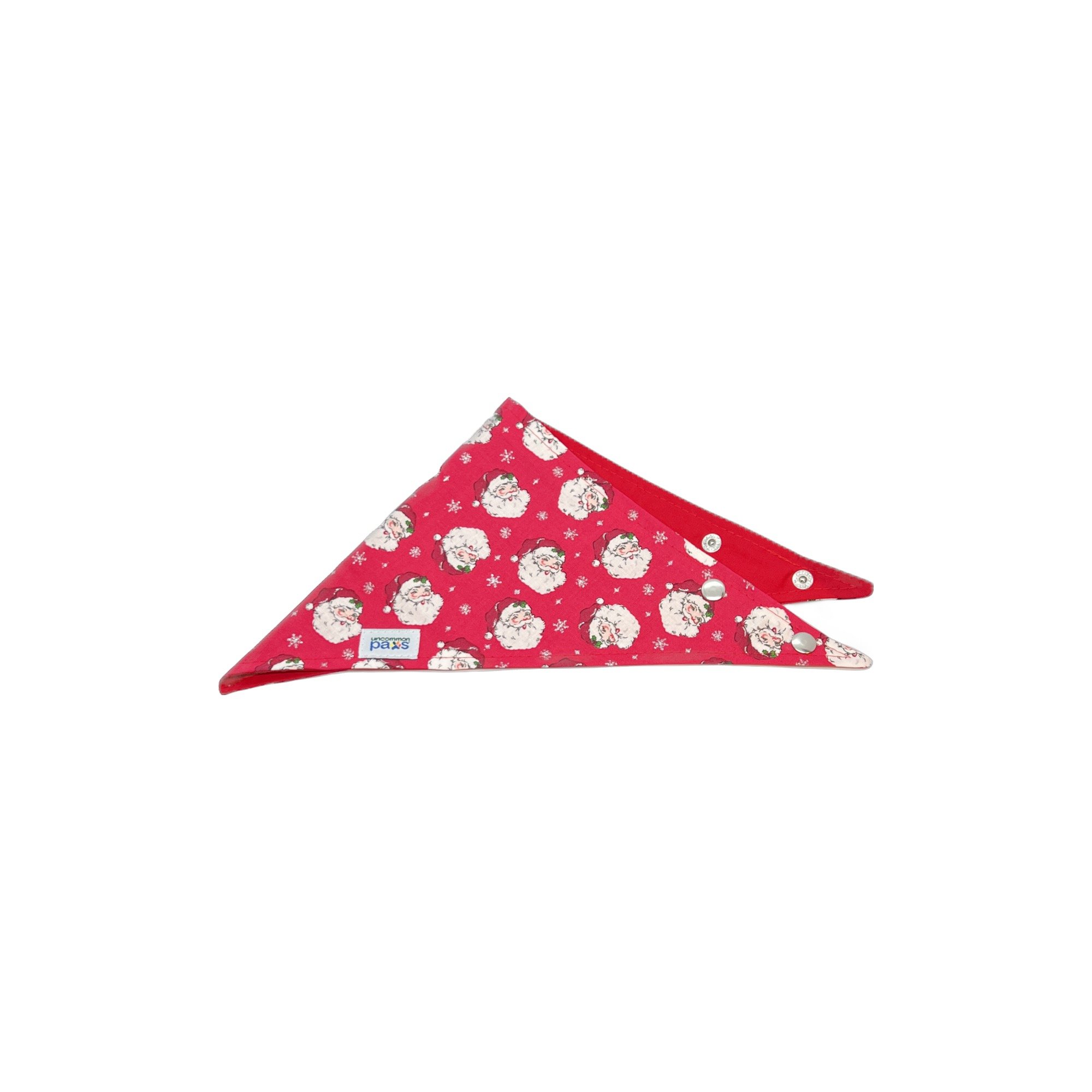 Celebrate the season with the Santa Claus Head Metallic bandana, showcasing cheerful Santa designs with a festive metallic touch. Handmade in Maine, this reversible accessory features adjustable snap closures for a comfortable and secure fit.